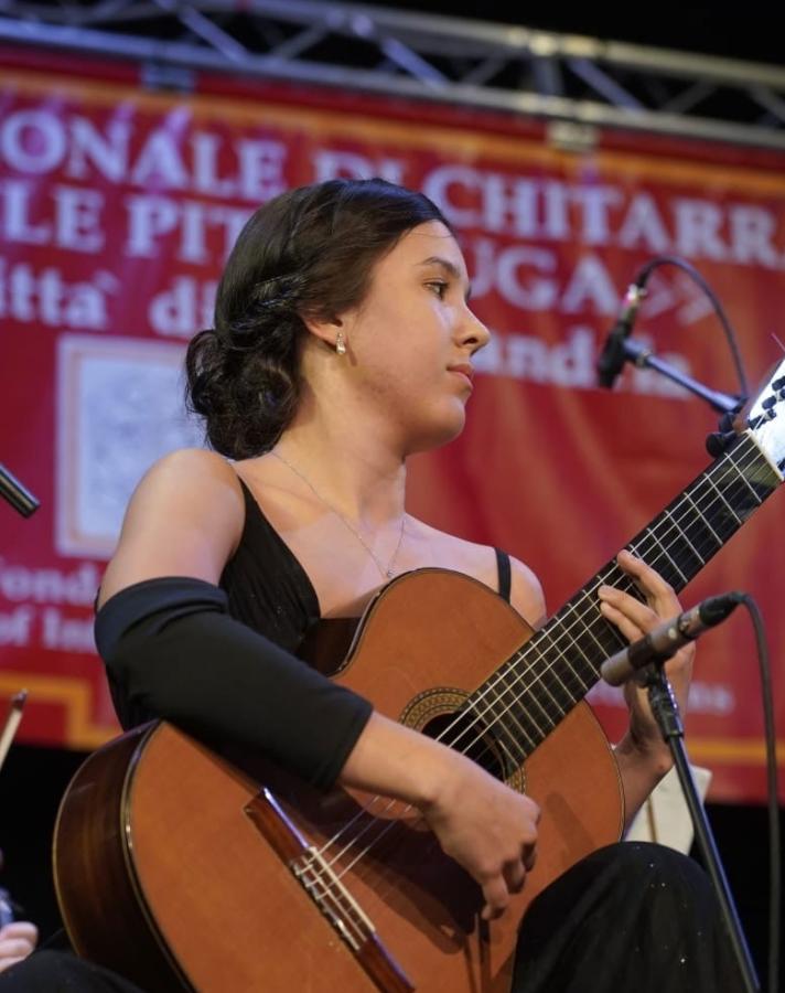 Catalina Pires, born on Dec.16, 2003, presented her outstanding talent very early. At the age of 6 years, she obtained her first violin lessons. It did not take long before she grabbed the audience’s and critics attention. Due to her intuitive musical talent, she quickly began to replay the pieces that she learned on the violin on other instruments, and discovered her enthusiasm for the guitar. Since 2011, Catalina was guitar student of Walter Abt in Munich and has since then performed at numerous prestigious guitar festivals and charity concerts. She won several special prizes at her first international guitar competition as the youngest participant. Due to her musical diversity and extraordinary combination of the two strings instruments, she has won numerous other prestigious awards, including exclusively first prizes at the German Youth competition Jugend Musiziert. She won the second prize at the Michele Pittaluga International Guitar and Composition Competitions "Premio Citta di Alessandria" in 2025. Along with her exceptional musical language, she captivates her audience again and again at various concert performances, reaping wide acclaim and rave reviews. Her first CD YOUNG GENIUS (shop/abt-music.com) was supported by the International Foundation for Culture and Civilization in Munich.