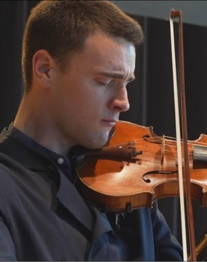 Born on January 11/2000 in Italy to a Serbian father and an Italian mother, Teofil began his musical journey at a very young age, guided by his parents, both highly esteemed violinists. His extraordinary career began at just 4 years old when he won the International Competition for Young Talents in S. Bartolomeo, an early sign of a career destined to shine. With a career that took off at a very young age, Teofil has already captivated audiences at some of the world's most prestigious theaters and festivals. At just nine years old, he performed as a soloist with an orchestra in iconic venues such as the Teatro Olimpico in Rome and the Teatro Greco in Lecce, playing Mendelssohn's and Mozart's concertos. He has participated in international festivals in France, Germany, Slovenia, Serbia, and many other countries, collaborating with renowned orchestras such as I Solisti Veneti, I Virtuosi Italiani, and the Lecce Symphony Orchestra, Haydn Orchestra. After earning his diploma at the Monteverdi Conservatory in Bolzano under the guidance of Maestro Marco Bronzi and later with Maestro Roberto Trainini, Teofil is currently a student in the class of Stefan Milenkovich in Novi Sad, Serbia. Teofil continues to refine his artistry, growing as a performer. His presence on stage is a blend of impeccable technique, visceral passion, and magnetic charisma that captivates every audience.