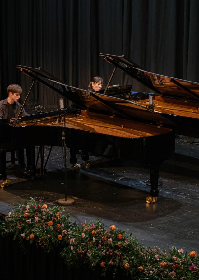 39 competitors were selected on video and were invited to play in Hastings. In the First round, they were asked to perform together with another pianist an excerpt of two different concertos chosen from two different lists A and B, the first one with classical composers (Mozart and Beethoven 3 and 4) and the second one with romantic and 20th century repertoire.